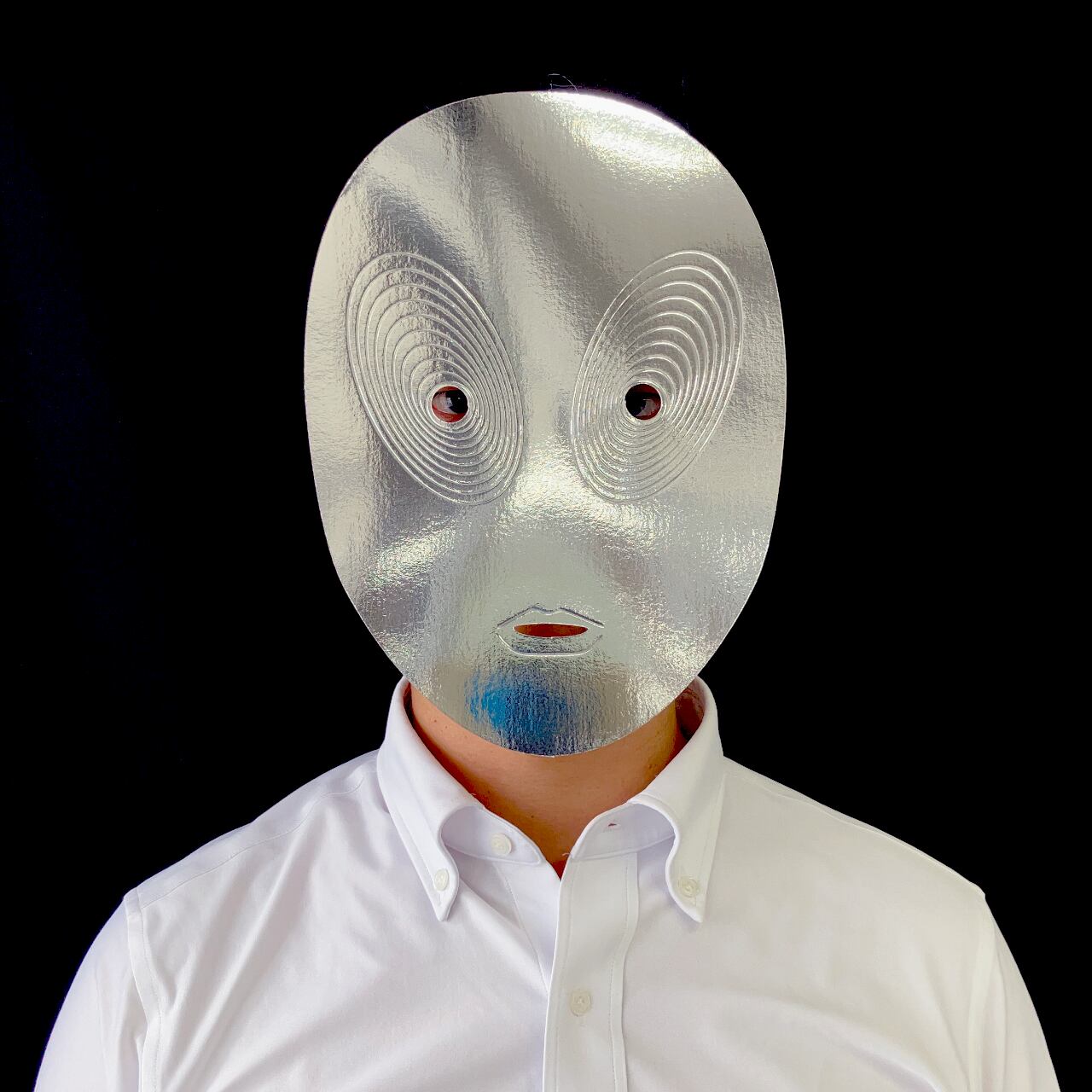 暗闇で光を反射して輝くお面は恐怖心を煽ります。