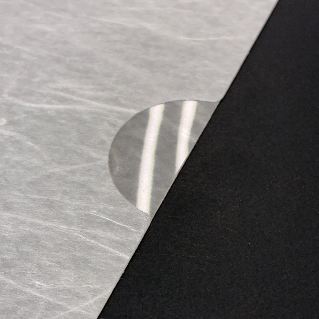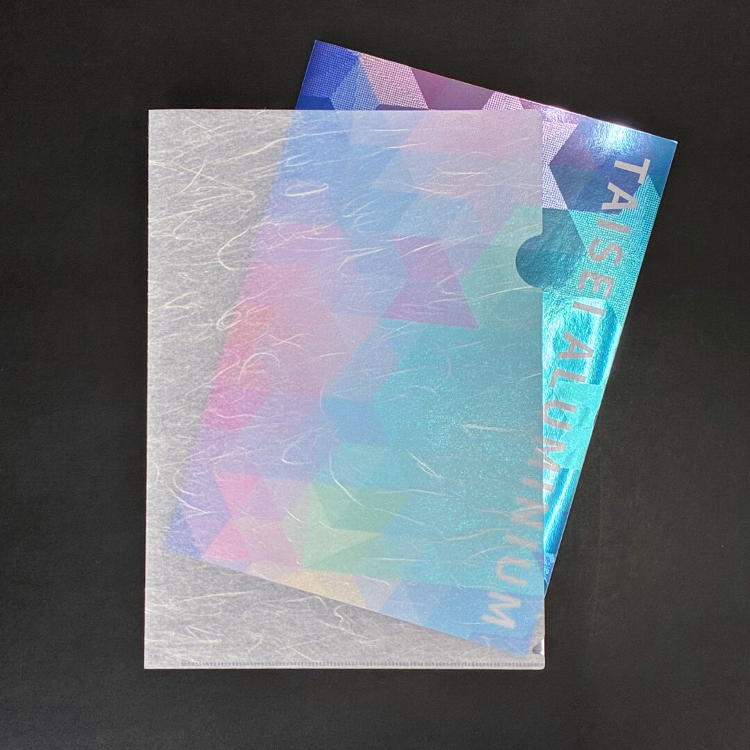 当社独自のラミネート加工技術「雲竜フィルム」を使用し、通常のクリアファイルにはない重厚感と、手に馴染むしっかりとした厚みを実現しました。